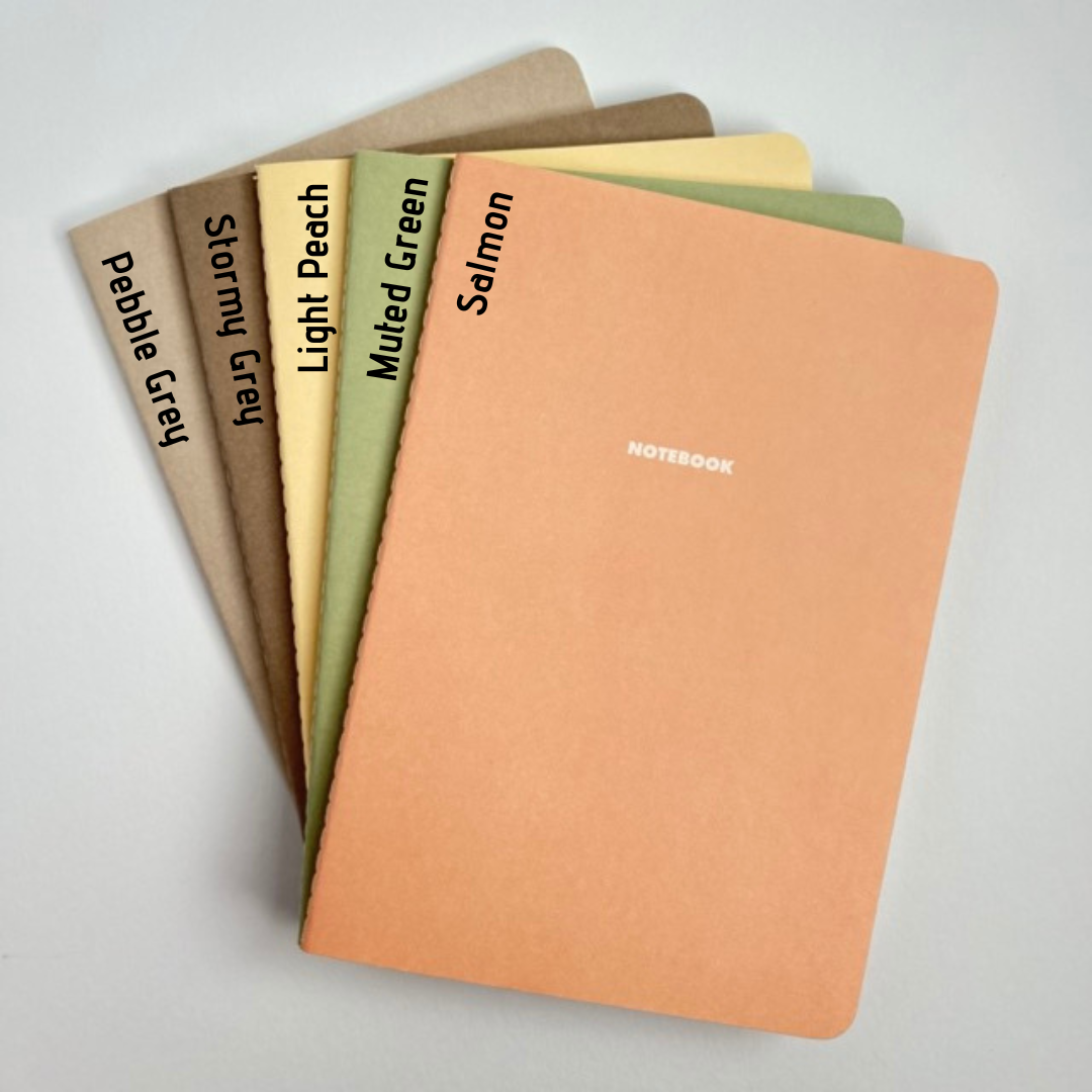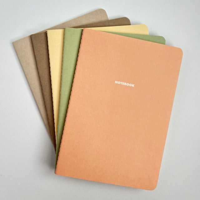 60 page lined journal with stitched binding, 5.5" x 8.3", 'NOTEBOOK' printed on the front.